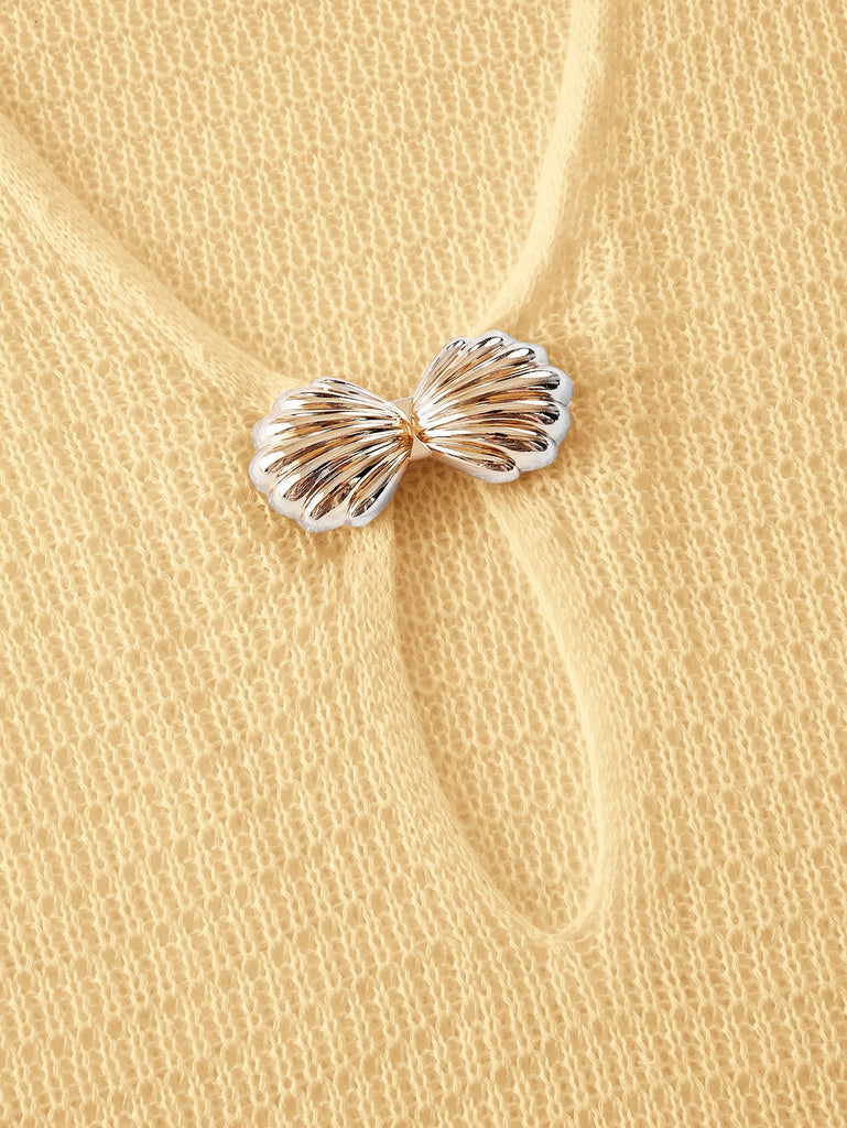 Confeccionada en tejido liviano tipo crochet, destaca por su tono amarillo suave que ilumina la piel y resalta el bronceado. Su diseño de manga larga acampanada y el escote profundo con detalle de concha metálica en el centro aportan un toque sensual y sofisticado.